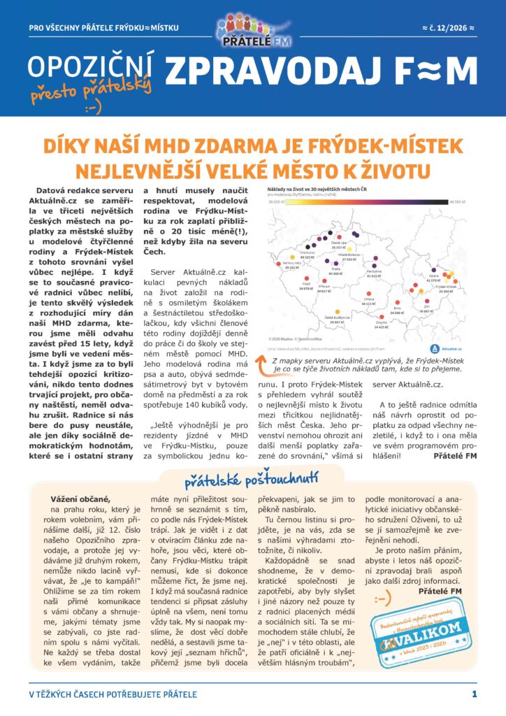 DÍKY NAŠÍ MHD ZDARMA JE FRÝDEK-MÍSTEK NEJLEVNĚJŠÍ VELKÉ MĚSTO K ŽIVOTU