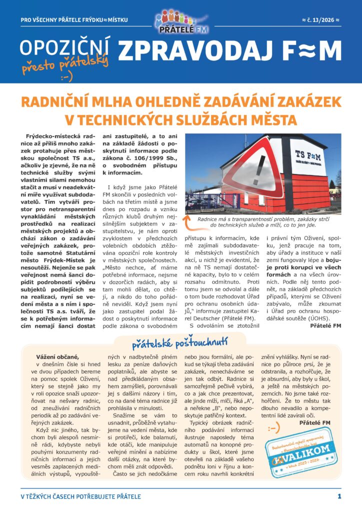 Zde zveřejňujeme informace a názory z opozičního pohledu na aktuální dění v našem městě.